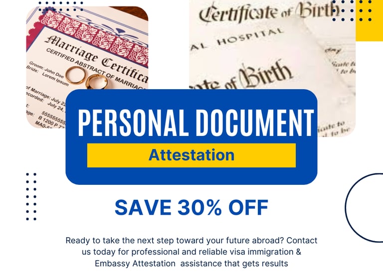 Educational, Birth, Marriage, Degree, Diploma, PCC, Medical, Divorce, Transfer, Power of Attorney, Commercial, Affidavit, Experience, Incorporation, Death.